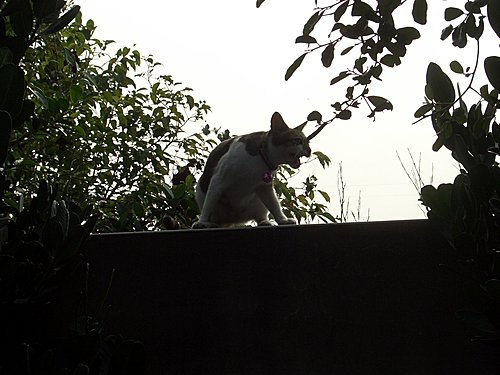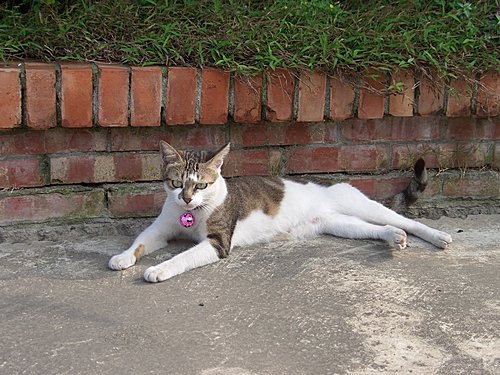 小咪很悠閒的坐著~~有沒有發現她脖子上多了個鈴噹丫,很古椎哦(不過臉怎麼有點臭>.<!!)