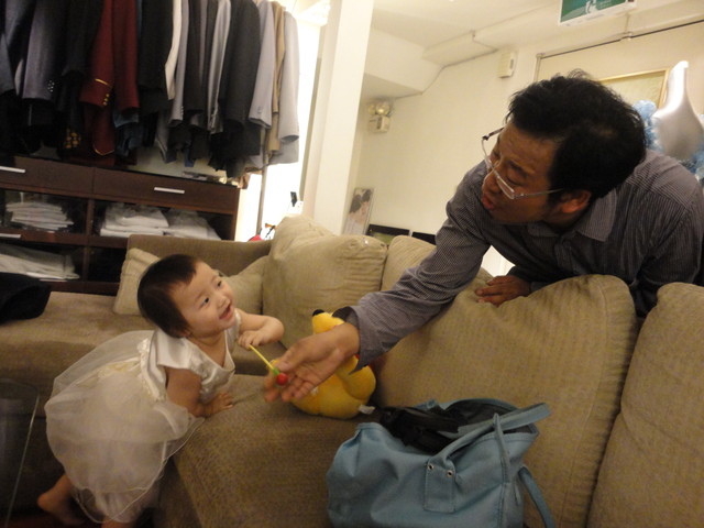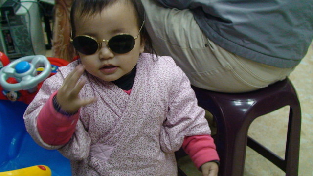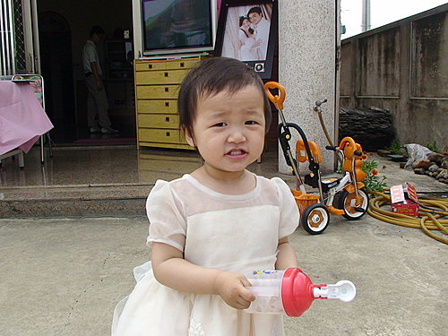 寶寶穿短袖內搭長衣,看起來很像採茶的阿桑~