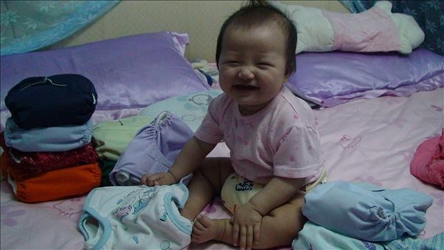 我們家寶寶從三個多月開始我就給她使用"布"尿布
