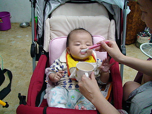 餵太慢可是會被我兇的哦~~"動作快一點!!!"