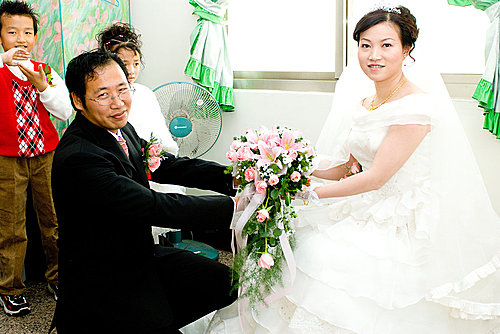 經過一天的濃妝艷抺後,正式嫁到黃家~~