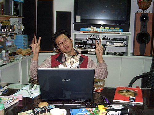 最近剛買了一台筆電,來幫老闆跟小咪happy的合照一張...^^