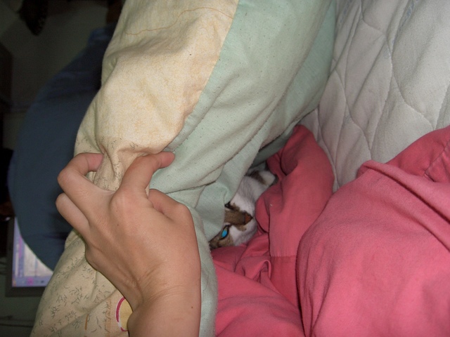 被窩裡有一隻~~~~貓耶